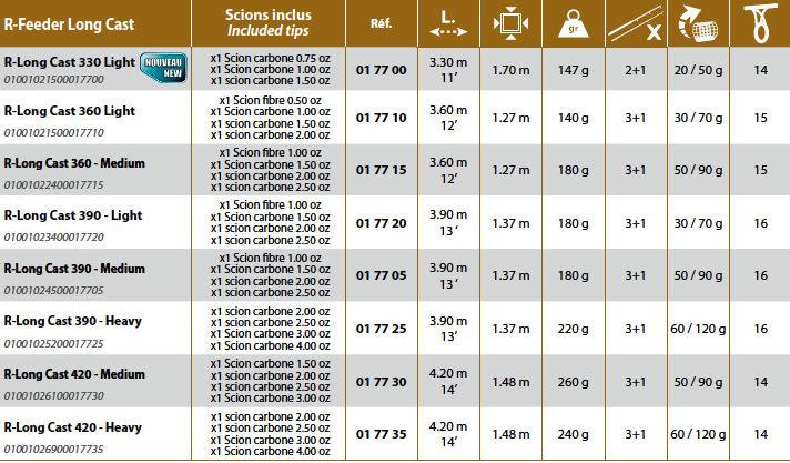 Ri­ve R-Fe­e­der Long Cast 390 heavy  iz­u­zet­no jak i mo­ćan štap, na­me­njen za­ba­ci­va­nju na ve­li­ke da­lji­ne.